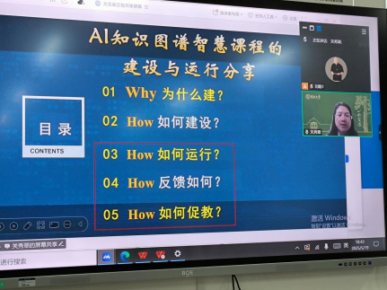 关秀翠教授以“数学建模”和“最优化方法”两门课程为例,从为什么建知识图谱、如何建设知识图谱、如何运行知识图谱、知识图谱如何促教以及课程反馈情况等五个方面进行了详细阐述,分享了宝贵的经验和建议,使与会教师对于智慧课程的认识有了进一步的理解和提升。