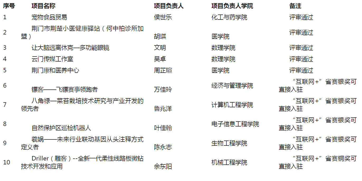 根据《荆楚理工学院大学生创新创业园管理实施办法》和《荆楚理工学院大学生创新创业园入园标准及评审办法》的相关规定,经公开发布、组织申报、资格审查、项目初审、专家评审等程序,我院学生文明的“让大脑远离休克—多功能眼镜”、 吴卓的“云门传媒工作室”两个项目通过入园评审,入驻大学生创新创业园。