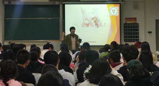 学工办主任周芸以大学爱情作为切入点,与学子们互动问答,给大家上了一堂生动的心理健康课。