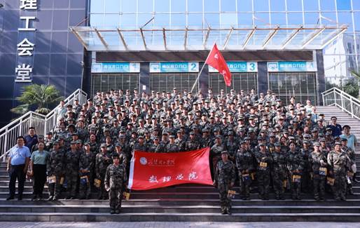 学院领导观看新生军训,同学们在教官们的指导下,排列整齐,步伐一致,口号响亮,展现出良好的精神风貌。在休息期间,学院领导与学生亲切交流,关心新生的身体状况和训练成效,对同学们的刻苦训练精神表示了高度赞扬,鼓励他们继续坚持,克服困难,圆满完成军训任务。