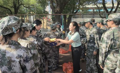 随后,老师们为同学们送上了精心准备的月饼礼盒,表达对大家的关心慰问和节日祝福,让远离家乡、在军训中度过中秋佳节的学生们感受到了学院大家庭的温暖与关怀。同学们接过礼物,脸上洋溢着幸福的笑容,纷纷表示将以更加饱满的热情投入到军训和今后的学习生活中去。