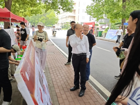 活动期间,校长张友兵亲临我院展区,不仅驻足观看,还参与益智互动,并与师生深入交流。张友兵校长对学院将学科特色融入劳动教育的创新做法给予高度评价,鼓励持续挖掘劳动教育的育人价值,着力培养兼具理论素养与实践能力的复合型人才。