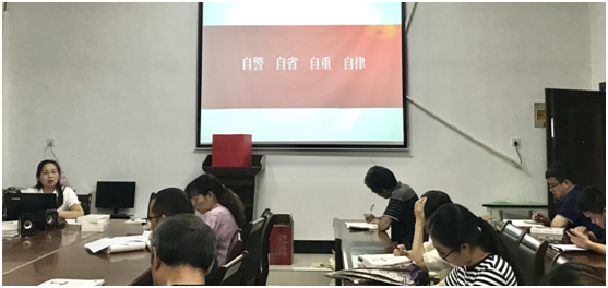 开讲廉政党课。学院党总支书记周娅给全体党员上了一堂题为《高校干部教师违纪违法的具体表现》的廉政党课,以问题为导向,从学院发展入手,结合“身边人”违法违纪案件,以案为鉴,以案明纪,要求党员教师自警、自省、自重、自律,以身作则、做好表率。