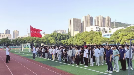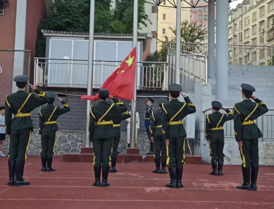 随着激昂的国歌响起,鲜艳的五星红旗冉冉升起。全体师生肃立凝望,齐声高唱国歌,每一张脸庞都写满庄严,每一颗心中都激荡着对祖国的赤诚。那抹鲜艳的中国红不断攀升,似一团永不熄灭的火种,点燃了在场每个人心中炽热的爱国豪情,让庄严与神圣的情感在每个人的血脉中奔涌激荡。