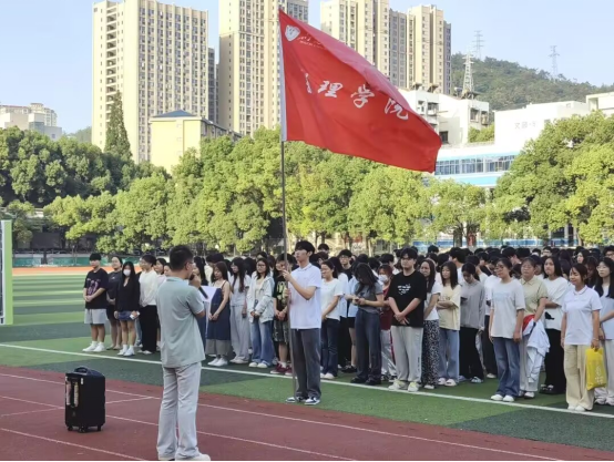 辅导员岳耀闯发表了国旗下讲话。岳老师以 “珍惜、坚持、责任” 三个关键词为切入点,勉励同学们在人生道路上,要珍惜青春年华,坚定理想信念,勇担时代责任,以敢为人先的魄力乘风破浪,将个人理想融入家国情怀,在社会实践中绽放青春光彩。