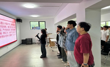 在庄重的党员徽章佩戴仪式中,韩涛、周娅两位书记亲手为预备党员佩戴象征责任与使命的党员徽章。面对鲜红党旗,全体预备党员高举右拳,以铿锵有力的誓言许下对党和人民的庄严承诺。闪耀的党员徽章与铮铮誓词交织,让每位学员深刻体会到共产党员的光荣使命。