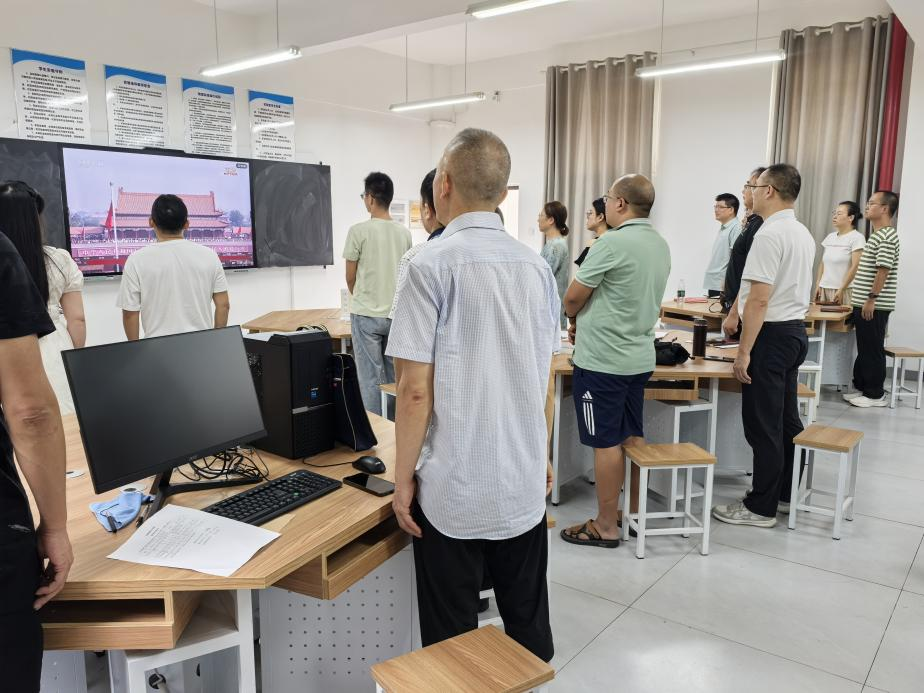 80响礼炮响彻云霄,升旗仪式庄严瞩目,当国歌响起,全体教师自发起立行注目礼。习近平总书记的重要讲话立意高远、内涵丰富,既回顾历史,更宣示未来,号召我们从伟大抗战精神中汲取奋进力量,坚定实现中华民族伟大复兴的信心和决心。阅兵式上,受阅官兵眼神坚毅、精神抖擞、步伐铿锵、英姿勃发,大国重器震撼亮相,这种磅礴气势直击心灵,充分彰显了新时代强国强军的伟大成就,传递着中国坚定不移维护世界和平的决心。老师们时而屏息观看,时而热情交流,会议室现场庄严而热烈。