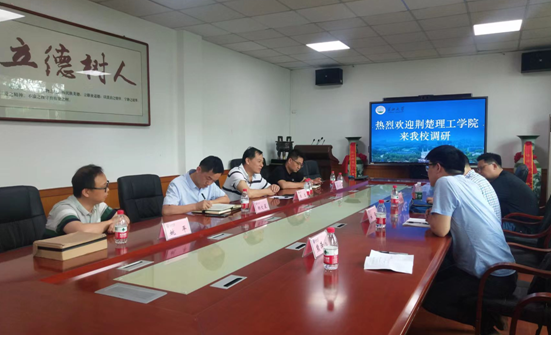 上午,考察组来到三峡大学理学院,院长郑胜热情接待了考察组一行。考察组先参观了三峡大学物理实验示范中心,详细了解实验项目设置、实验室管理运行等情况,随后双方举行座谈会,就大学物理实验室建设和管理、学科和专业建设、科学研究和人才引进、硕士研究生联合培养、硕士研究生导师互聘等方面进行了深入探讨和交流,并达成了硕士研究生联合培养的初步意向。座谈会后,三峡大学副校长主悔亲切接见了考察组一行。